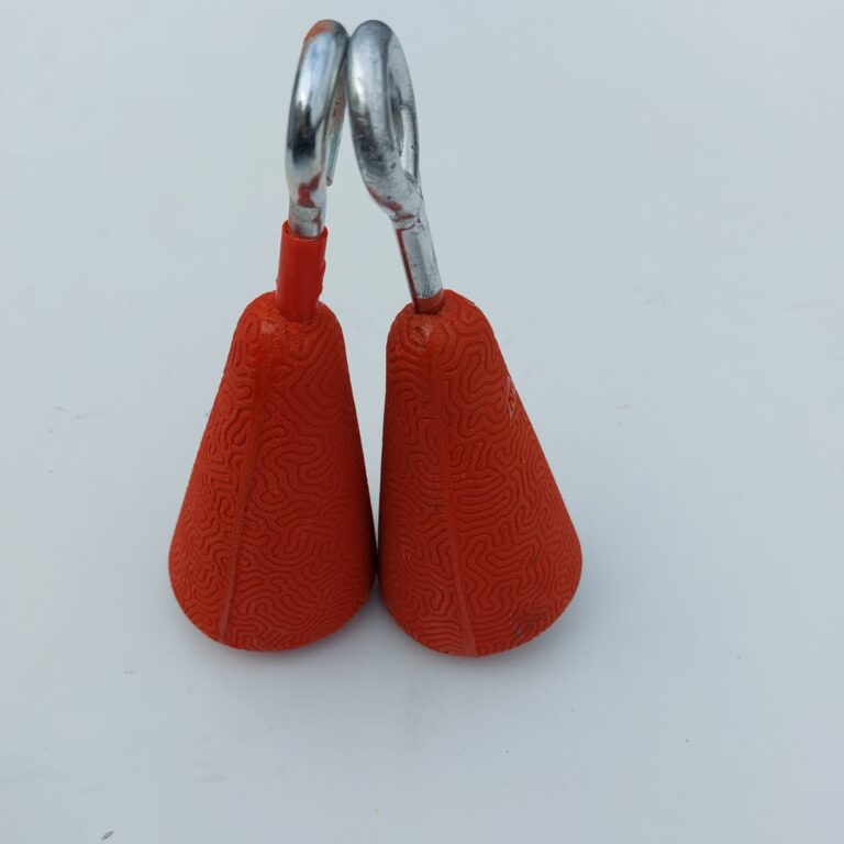 a Pair of Cone grips in the upgraded version of the Cube Holds. The unique texture of the cones makes the use of magnesium redundant even in hot and humid conditions. The grip is made of 2N18D-CHX2, an innovative formula with many components that guarantee extreme durability over the years, and is specially adapted to outdoor conditions and harsh weather.
