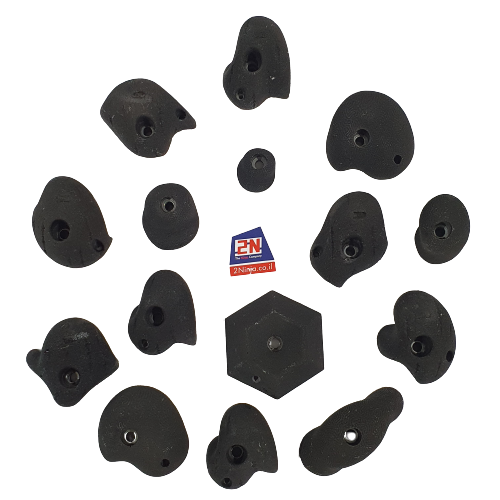 Set of 15 climbing grips by 2NINJA. The unique set includes 15 climbing holds ("handholds") - suitable for children. The grips are of different difficulty levels. Jigs, pinches, and foot grips but all are also suitable for the non-professional user. The grips were specially chosen to be diverse and unique. The set is very suitable as climbing wall grips for small walls and houses.