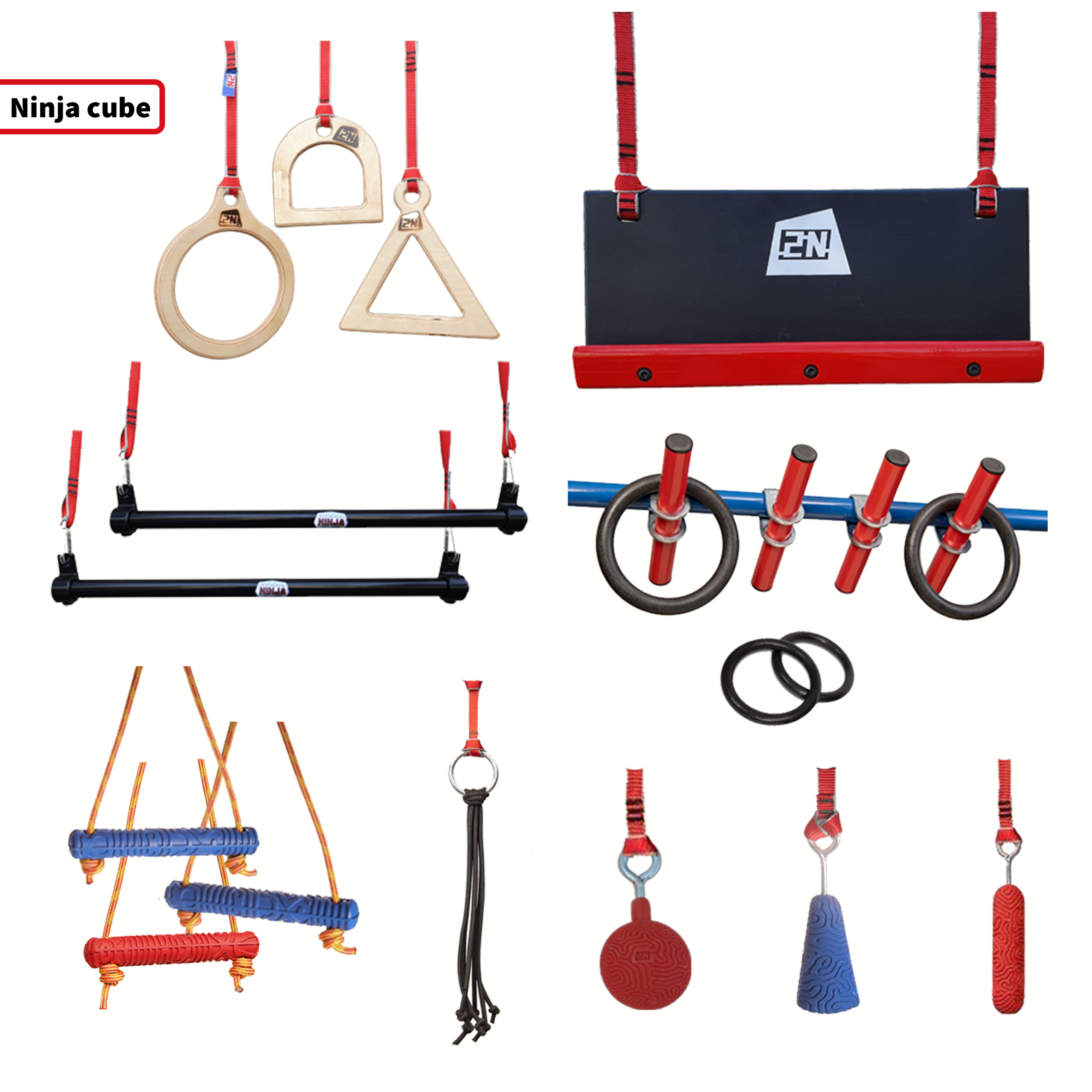 טבעת נינג'ה אולימפית * 2 יח' עם רצועות ראצ'ט ארוכות מתכווננות , הטבעות משמשות גם להעברה במכשול הפייר רינגס .