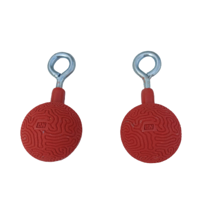 A pair of CUBE HOLDS ninja balls. Classic ninja ball grip in the upgraded version of the Cube Holds. The grip is "gentler" on the palm and therefore causes significantly less friction and calluses even with a high training volume. The grips are made of 2N18D-CHX2, an innovative multi-component formula that guarantees extreme durability over the years and is specially adapted to outdoor conditions and harsh weather. The grips are supplied with 55 cm long adapted connection straps with sewn loops for attaching the grip and anchoring.